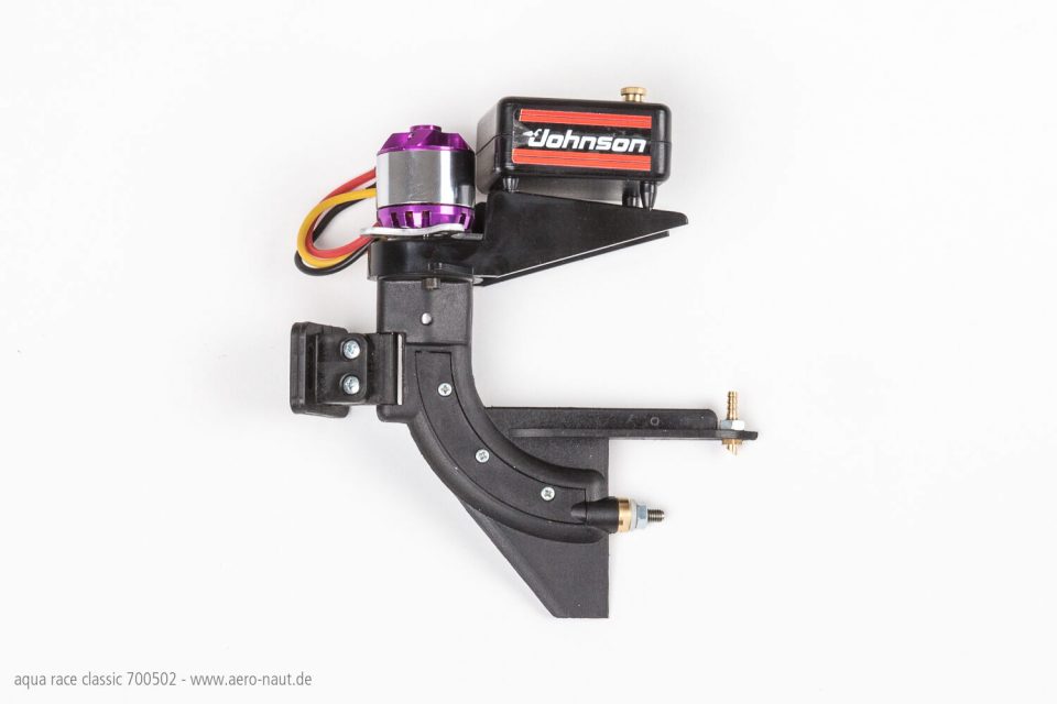 The Aqua Race Classic Engine is an outboard motor in the look of the 1930-1950s for classic motor boats such as our Spitfire or other boats up to approx. 31.5 in (80 cm) in length, the assembly is carried out with 4 screws on the transom of the model boat and can be adjusted in height by approx. 7 mm, the angle of attack can be adjusted by +/- 5 °, the electric motor is mounted open in the front of the tank, the drive is via a flexible shaft, the delivery takes place without motor and propeller, but with a coupling 3.17 / 4.0mm.