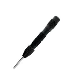 This auto centre punch allows you to easily mark work without a hammer by using one hand. It produces an accurate indent mark for locating the tip of a drill bit. The spring pressure can be adjusted by simply rotating the knurled top of the punch.