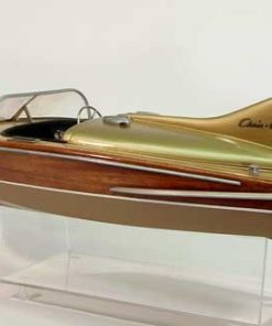 This fun little speedster is from the era of big fins and wings. The sporty Cobra model is an all-wood kit featuring a double planked birch plywood and mahogany veneer hull. The two-tone deck is achieved with the use of basswood and mahogany veneer. The hatch and fin section is preformed ABS plastic. Chrome fittings, complete running hardware including a three-blade brass prop, decals and flag complete this blunt nose beauty of the 50s. Length: 27 inches Beam: 9-3/4 inches Scale: 1/8th Running Hardware: Included in kit *Additional parts required for R/C*