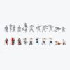 13 pieces. 2 Officers and 11 Enlisted in various poses that can be used for either Union or Confederate navies. For the most part this set illustrates a gun crew and helmsman. They can be used in other areas of the ship and provide a wonderful way to give a sense of scale to your completed model.