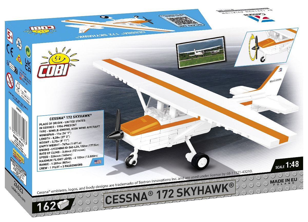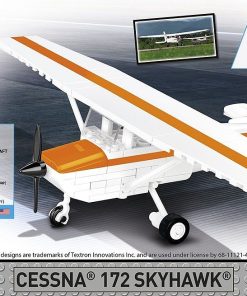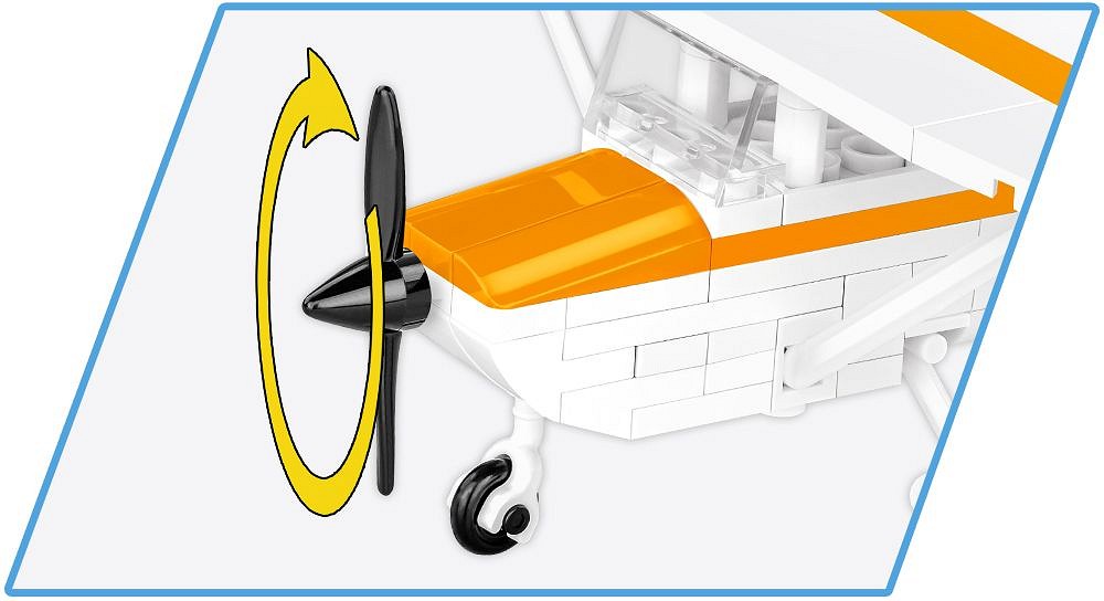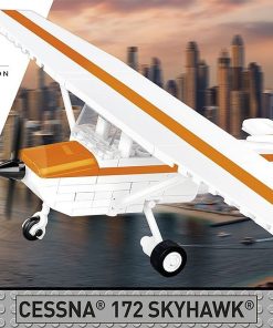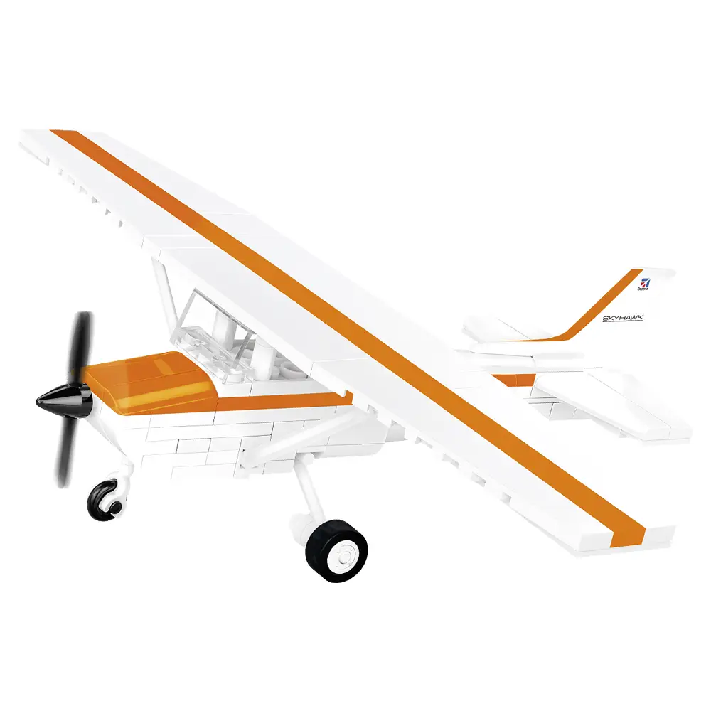 We designed the block model with attention to detail in 1:48 scale using 162 elements. Its size fits perfectly into the collection of our modern aircraft. The model has rotating wheels and a movable propeller. The blocks have prints. No stickers here! We designed a new block shape specifically for this set – a vertical stabilizer, so that our model could imitate its original as realistically as possible. The construction of the set is simple and runs smoothly thanks to the clear paper instructions. The Cessna 172 Skyhawk is a must-have model for civil aviation enthusiasts. Take your passion home and build it!