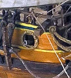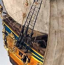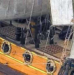 Based on original Admiralty plans, Corel’s kit replicates the H.M.S. Peregrine after a late 17th century overhaul, when her small spritsail-topsail mast was replaced by the jib boom as an extension of the bowsprit. Plank-on-bulkhead construction features pre-cut wooden parts and double planked hull. Highly detailed cast metal parts are used for ornamentation, anchors, mast caps, chainplates, gunport frames and other details. Burnished metal cannon provide fire-power. Hardwood blocks and deadeyes, brass nails, three diameters of rigging, silk-screened flags and pennants, cotton sailcloth are also included.