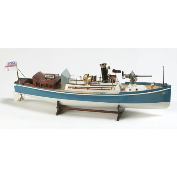 The 50 ft pinnace for ‘HMS Renown’ dates from this period. As many as 4 of these boats other man-of-war. The boats had a small forepeak, a crew compartment, a boiler room and a cabin. Above the crews’ quarters was a conical steel base with a permanent universal ring, on which a 3-lb quick-firing cannon or maxim machine gun could be mounted. This type of boat was used for a variety of tasks; ranking officers between boats, or to patrol the mouths of harbors for the protection of ships anchored therein hence the name ‘picket boats’.