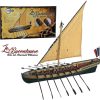 The completed kit builds into a 1:42-scale model that measures just over 29″ long and just under 25″ high. It is recommended only for those with extensive ship modeling experience.
