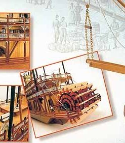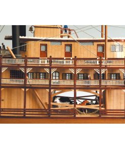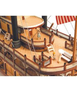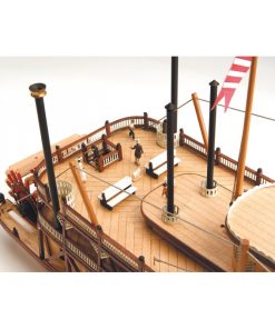 Discover the King of the Mississippi and its steamboat wooden model kit. The real steamer was entirely made of wood and equipped with boilers to move their iconic wheelpales, these ships were the solution to transport passengers and merchandise along the river well into the XX Century.