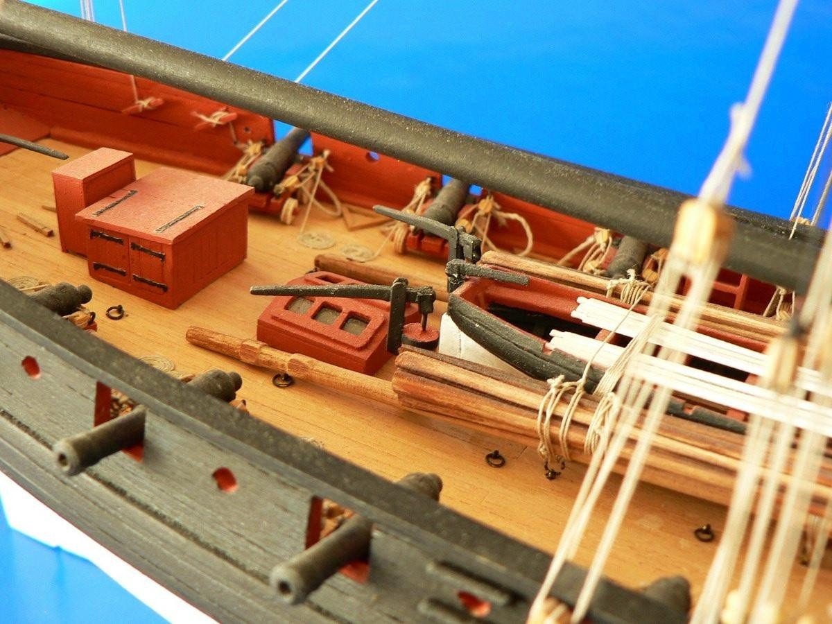 She was equipped with eighteen 6pdr guns. Total number of crew was from 155 to 194 persons (this numbers includes officers, sailors, gunners and marines).