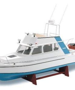 The Lisa M. is a typical motoryacht, as it can be found in all ports and marinas worldwide. Straightforward classic design with great elegance and great driving comfort with comparatively high travel speeds characterize this yacht type. And these features can also be transferred to the 1:25 scale model. All parts of the structure are laser-cut from plywood.
