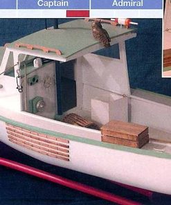 The kit includes many laser-cut basswood and plywood frames, deckhouse and cabin, basswood dowels and mahogany for planking and other parts, as well as brass rod and tubing, plastic window glazing and a selection of finely-detailed cast Britannia metal fittings.Full size plans and complete detailed instructions are provided, as are materials and plans for lobster traps, buoys, a bait tank and a lobster storage box. parts for a display cradle are included.