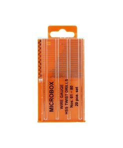Modelcraft 20 Pce Microbox Drill Set (No.61-80) This 20 piece set contains only the best quality HSS ground drills (not to be confused with similar looking sets containing cheaper inferior drills). Handy slide-top box releases only chosen drill.