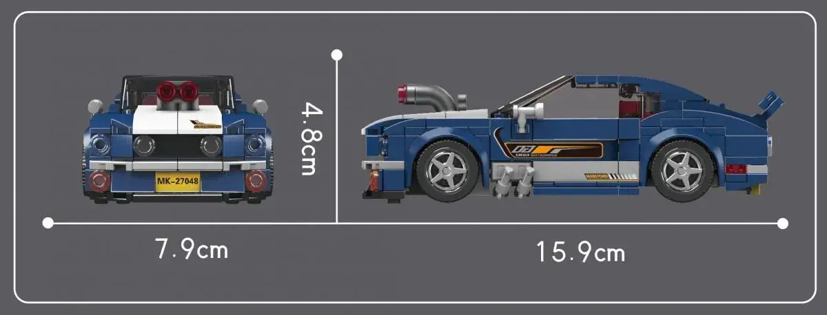 Crafted in a vibrant shade of blue, this 8-stud-wide model car embodies the spirit and design of the classic Mustang.