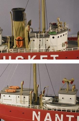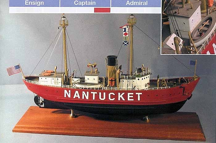 This great new model by BlueJacket portrays Nantucket LV No. 112 as she was built in 1936 in Wilmington, Delaware, with the tall steam-boiler stack. Reduced plans showing her present configuration are included in the instruction booklet.