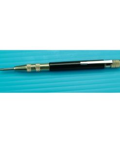 This two in one tool allows you to easily mark work ready for drilling a hole by using one hand. It produces an accurate indent mark for locating the tip of a drill bit. The spring pressure can be adjusted by simply rotating the knurled top of the punch. It can also be used as a scriber.
