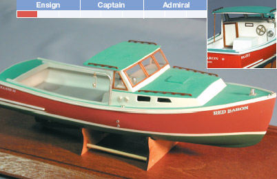 RED BARON is a Holland 32, built in Belfast, ME. Our thanks to Mr. Glenn Holland for his help and advice in designing this kit. While beautiful lines and a distinctive color scheme make RED BARON immediately recognized, she is best known for her record setting 57.8 mph in the 2000 Maine lobster boat races. Best of all, you don’t need to be an expert modeler to create a miniature of this famous boat.