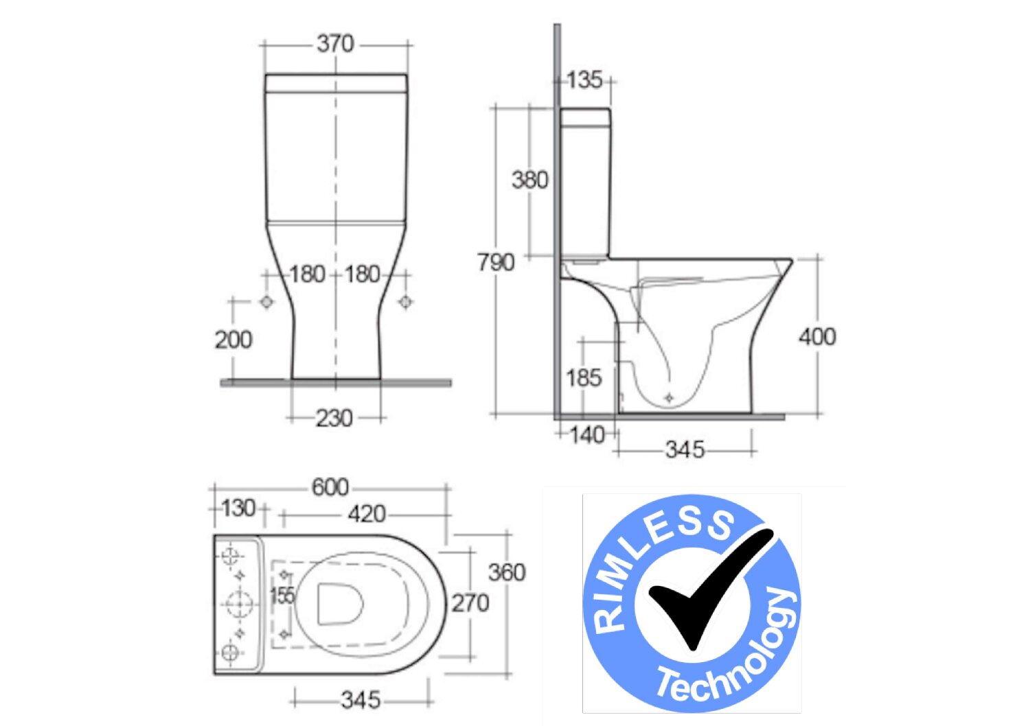 Resolve Mini Rimless Close Coupled Toilet & Soft Close Seat