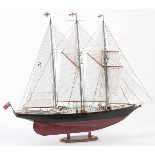 Three Masted Topsail Schooner ‘SIR WINSTON CHURCHILL’ was built in 1965 at the Richard Dunston Ltd., Shipyard in Hessle, Yorkshire, GB, for the “Sail Training Association” in Bosham. The constructors of this ship were Chamber & Nicholsen Ltd. The ‘Sir Winston Churchill’ is also equipped with a 240 HP help-engine and has a total sail area of 817 sqm. Kit includes laser cut wooden hull and wooden strips, fittings set, sails, rigging thread, plan and manual. Scale model of an English training ship. 1:75 scale Wooden hull 20.28″H 25″L 4.33″W. This kit contains English translation instructions, all measurements in the booklet are in Metric