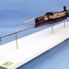 The construction of the deck is in marine grade, laser cut plywood, The deck planking is supplied cut to width in Mahogany and Obeche planks, the cockpit assembly and boiler casing is in Laser cut 1.5mm Hi impact styrene. The six window engine room skylight is in Laser cut styrene all for easy and quick assembly. Propshaft, propeller and motor mount are all included in this attractive model of this classic steam launch. A full set of fittings in cast alloy is included in the kit, a set of decals along with a full size plan and a comprehensive set of instructions to aid assembly.