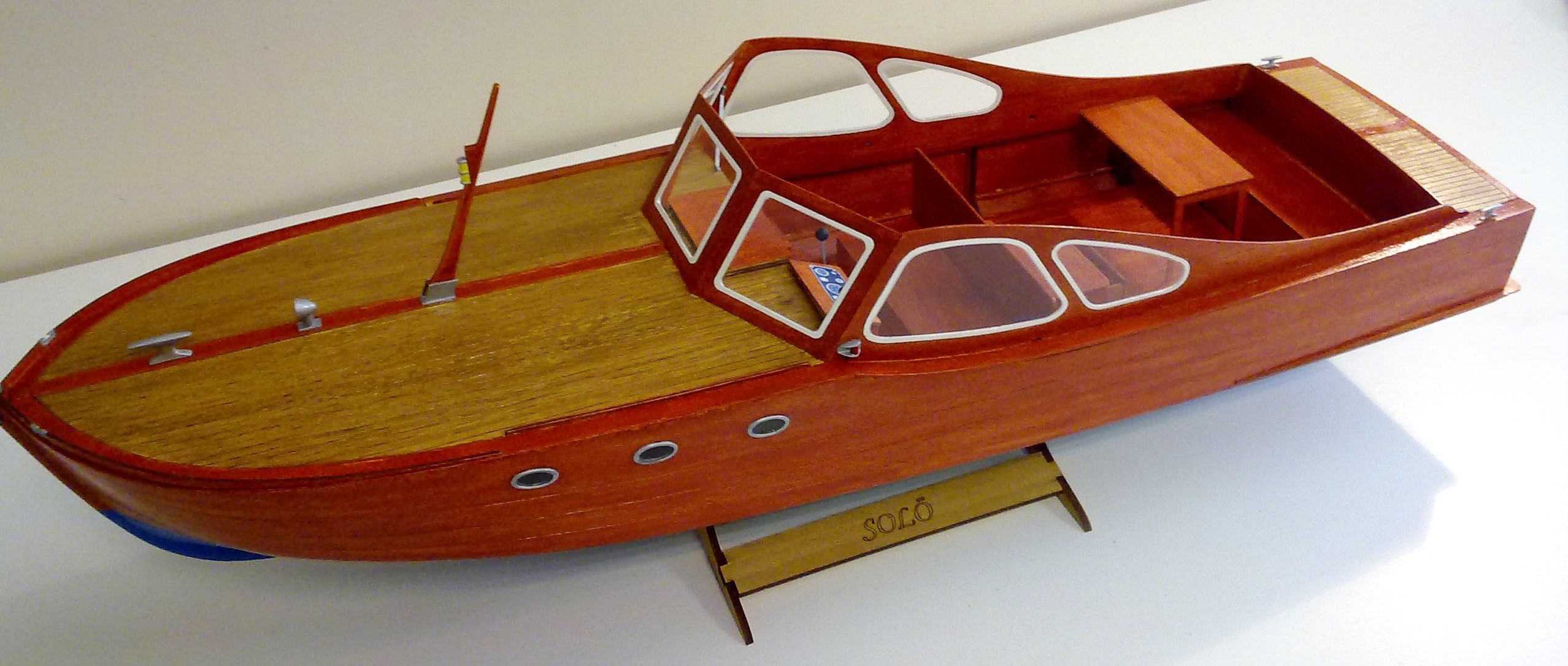 Solö Ruff is a classic day cruiser that was built by the swedish company Royal Storebro in the 1950-60′s. The boat was very popular and was built in several versions until 1965. It was mainly sold in Europe but also in the North Americas, in North America it had the name The Baltic Sea Chaser. Today the boat is still popular and very attractive on the classic boat market. This kit has a hull that is assembled in 2 halves and then put together to make it easier to build.