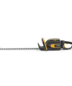 Thanks to its dual action syncro gearbox powering two blades at 3500spm, the HT 700e cordless hedge trimmer enables you to cut continually for up to 40 minutes on one charge. The 56cm double-action laser-cut blades cut easily through branches with a diameter up to 2.6 cm. For your comfort, you can adjust set the 140° rotating handle to five different positions. While for optimum safety, a hand guard protects you while you work. The ergonomic rear handle is made from soft rubber, so it’s always a pleasure to use. To protect your hedge trimmer from damage on hard surfaces, the HT 700e comes with handy blade tip protection. And it features a handy hanging hole, so you can easily store your electric hedge trimmer away. Battery and Charger NOT included, available as an optional extra.