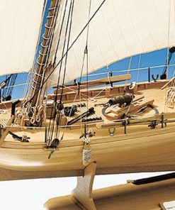 The groin material and the poles for masts and trees are of selected quality. The hardware set contains the cast parts such as cannon tube, rudder dents, anchors and the blocks and yarn for the rigging. Likewise, various parts are made of brass.