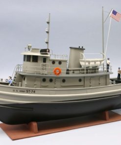 U.S. Army Tug ST-74 Length: 18 Beam: 4 3/4 Scale: 1/48 During WWII, the US Army operated a large fleet of ships. The primary task was to support the fighting man on the ground. Small harbor tugs, designed as ST, were used in large number by the Army to move ships in port and haul fuel and supply barges. Kit features: *2-piece vacuum-form plastic hull *Die-cut PVC structure *Laser-cut details *Full-color decals *Running hardware included *Additional parts required for R/C*