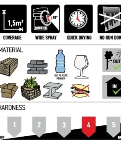 Maston One® with its unique technology the spraying distance is reduced to only 15cm, this means a more accurate painting experience with less spray dust and no run downs. The nozzle can be adjusted to any position from horizontal to vertical, making the product even more customer-friendly, not to mention sensationally fast drying time – just 15 minutes to touch dry!