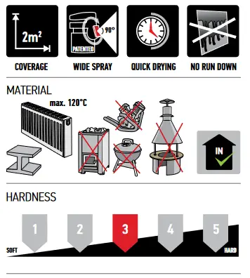 Very good coverage. 2m² per can. Thanks to its fast drying characteristics becomes touch-dry in 10 – 20 minutes.